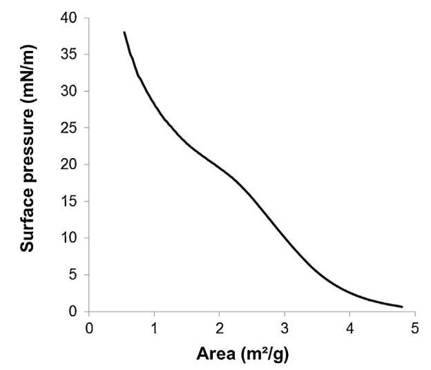 圖3。通過傳播精漿在空氣/緩沖液界面形成的單層的表面壓力面積(π–A)等溫線(n=3,標準偏差在0-18.9 mN/m范圍內(nèi)不超過1.5 mN/m,在18.9-38 mN/m范圍內(nèi)不超過1.2 mN/m)。