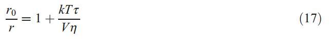 其中r0是在沒(méi)有旋轉(zhuǎn)自由度的情況下獲得的發(fā)射各向異性的極限值,k是波爾茲曼常數(shù),T是溫度,τ是熒光團(tuán)激發(fā)態(tài)的平均壽命,V是探針的有效分子體積,h是探針周?chē)恼扯?。從等?7可以看出,r值越高,剛性越高,反之亦然。