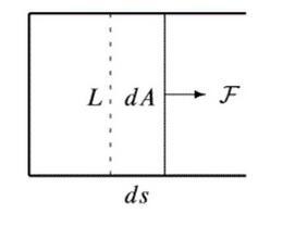 現(xiàn)在,將這個(gè)“活塞”向外拉出單位長(zhǎng)度ds時(shí)改變表面積dA=L·ds,則所用的力F=dW/ds=α·L,那么單位長(zhǎng)度的金屬絲受力就有F/L=α。也就是說(shuō),表面張力就等于表面能量密度。從單位來(lái)看,定義的表面張力的單位是F/m,表面能量密度α的單位是J/㎡,兩者也相等。