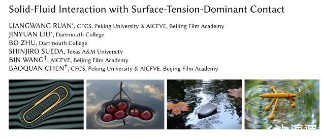 近日,在由北京大學(xué)陳寶權(quán)教授研究團(tuán)隊(duì)與北京電影學(xué)院未來影像高精尖創(chuàng)新中心、達(dá)特茅斯學(xué)院、德克薩斯農(nóng)工大學(xué)合作的論文《Solid-Fluid Interaction with Surface-Tension-Dominant Contact》中,作者們提出全新的模擬框架處理帶表面張力的流固強(qiáng)耦合,能夠精確模擬各種與表面張力相關(guān)的物理過程。