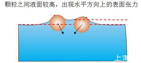 圖7親水疏水顆粒相互使液面變化,打破原來所受表面張力的對稱性,出現(xiàn)相互排斥的表面張力