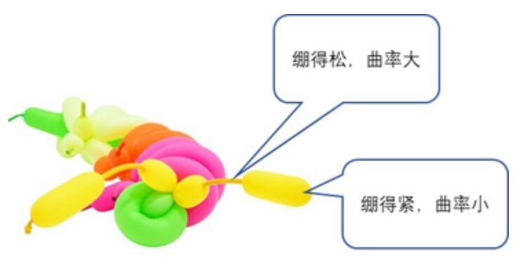 原因是,在繃得緊和繃得松的地方,皮膜的曲率是不相等的:曲率越大,同樣的張力所能產(chǎn)生的壓力差就更大;曲率越小,同樣的張力產(chǎn)生的壓力差就越小。反過(guò)來(lái)說(shuō),如果產(chǎn)生同樣的壓力差,曲率大的地方,所需要的張力就越?。ㄔ跉馇蚣?xì)的地方,皮膜就松)。反之亦然(在氣球粗的地方皮膜就緊)。