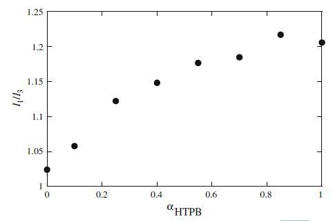 圖7 HTPB+Mega-10混合體系中芘熒光強度的I1/I3比與αHTPB的關(guān)系圖