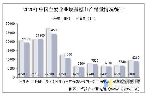 2020年中國主要企業(yè)烷基糖苷產銷量情況統(tǒng)計