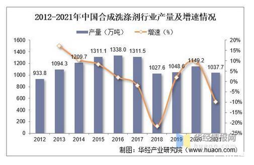 2012-2021年中國合成洗滌劑行業(yè)產量及增速情況