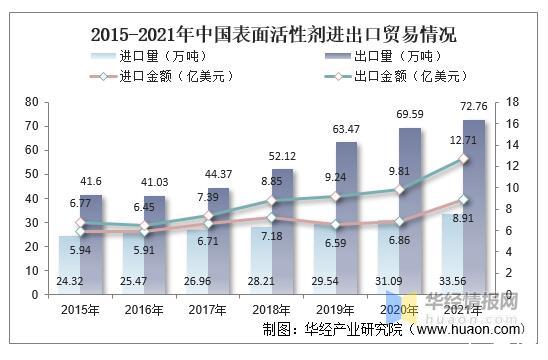 2015-2021年中國(guó)表面活性劑進(jìn)出口貿(mào)易情況
