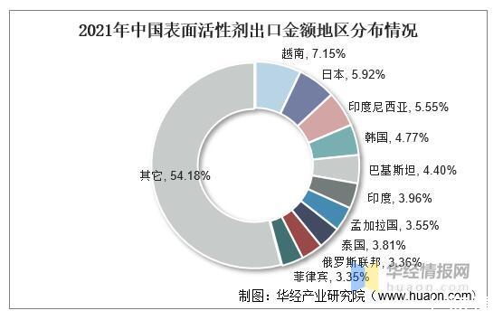 2021年中國(guó)表面活性劑出口金額地區(qū)分布情況