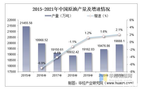 2015-2021年中國(guó)原油產(chǎn)量及增速情況