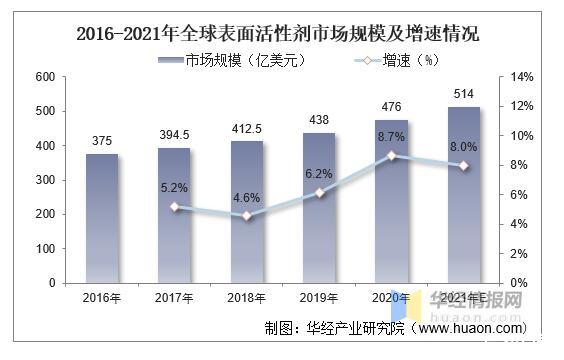 2016-2021年全球表面活性劑市場(chǎng)規(guī)模及增速情況