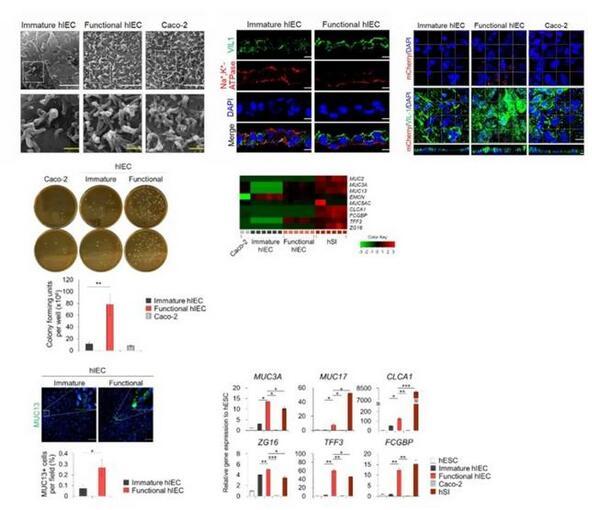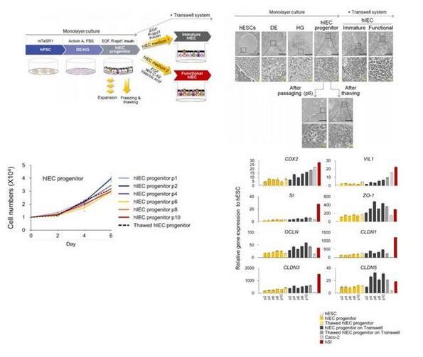 鑒于此,韓國生命工學(xué)研究院的一項(xiàng)研究開發(fā)了一種重復(fù)性良好的兩步方法來誘導(dǎo)人多能干細(xì)胞分化為可擴(kuò)大的hIEC祖細(xì)胞和具有功能性的hIEC單層細(xì)胞。