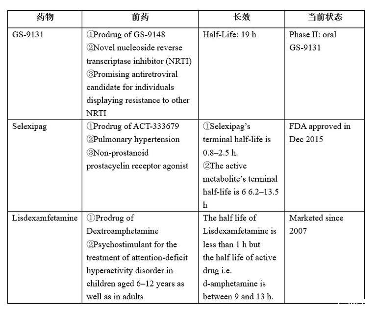 表1.FDA批準(zhǔn)的長(zhǎng)效前藥