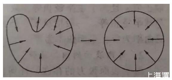 當(dāng)你吹泡泡的時(shí)候,無論用什么泡泡圈,吹出來的泡泡都是近球形的,童鞋們會(huì)懊惱為什么:不能吹個(gè)泡泡都是愛你的形狀呢?從受力分析而言,當(dāng)泡泡為不規(guī)則形狀時(shí),其相鄰的兩點(diǎn)曲率不一樣,則表面張力方向不一樣,根據(jù)受力分析,水會(huì)向合力的方向流動(dòng),最后平衡狀態(tài)為相鄰兩點(diǎn)受力一致,曲率一致。推廣到整體,就是一整個(gè)球體形狀的形成。