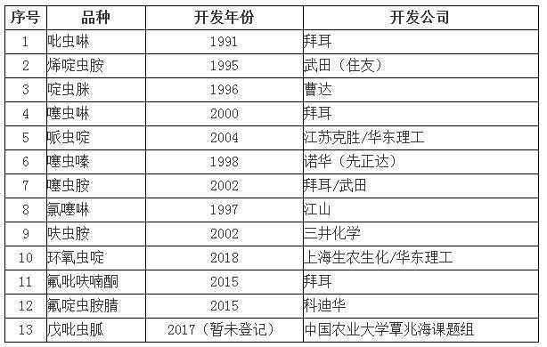 新煙堿類農(nóng)藥是繼有機(jī)磷類、氨基甲酸酯類、擬除蟲菊酯類殺蟲劑之后的第四代殺蟲劑,隨著高毒農(nóng)藥在全球市場的退出,新煙堿類殺蟲劑逐漸成為防治刺吸式口器害蟲、小型鱗翅目和鞘翅目害蟲最有效的一類殺蟲劑。