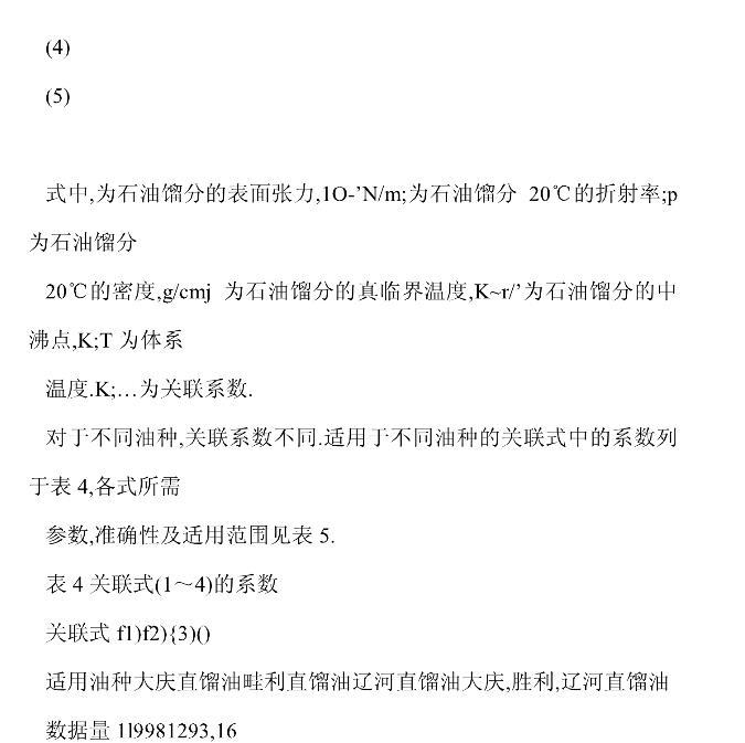 【摘要】:確定并建立了石油餾分靜態(tài)表面張力的測定方法,并用吊片法表面張力儀及三種純烴考核了儀器的準(zhǔn)確性,建立了回測法以考核試樣蒸發(fā)損失的影響。實側(cè)了大慶、勝利和遼河三種原油直餾餾分在不同溫度下的表面張力及相關(guān)特性。提出兩類實用范圍不同的預(yù)測國產(chǎn)石油餾分表面張力關(guān)聯(lián)式,其平均相對偏差分別為1.17%~1.26%和1.77%~2.77%,可滿足一般工藝要求。