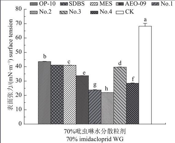 70%吡蟲啉WG(Imidacloprid 700 WG)為青島瀚生生物科技股份有限公司產(chǎn)品。農(nóng)藥助劑見表1。