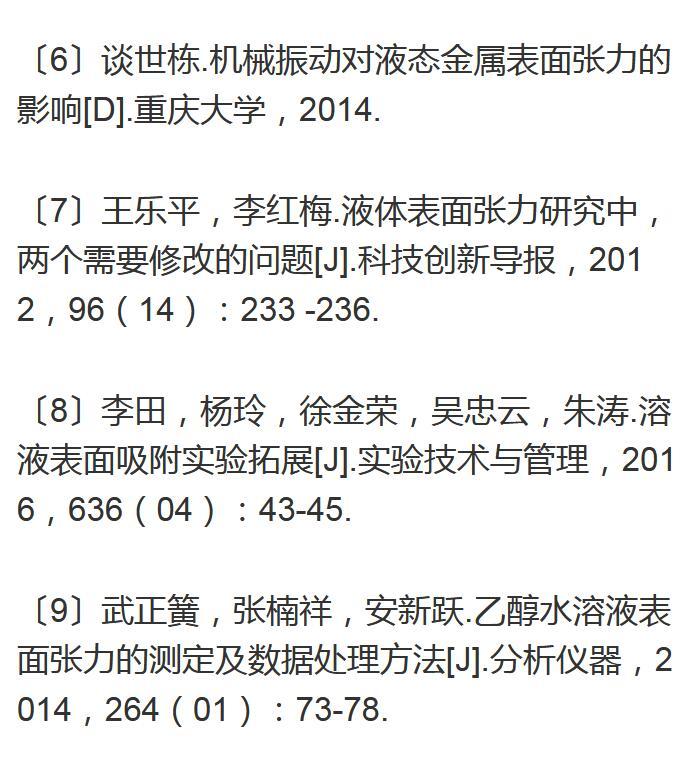 【摘要】:對于最大泡壓法測定表面張力的實驗,我們通過調(diào)整冒泡速度對其進行實驗探索。實驗測試了冒泡速度分別為3,5,7,9,11s/個時,乙醇與異丙醇兩種溶液在濃度為10%,20%,30%,40%,50%時表面張力的大小。結(jié)果顯示,不同濃度的乙醇與異丙醇溶液,當(dāng)冒泡速度為11s/個時,這兩種溶液的表面張力值最接近理論值。因此在測定表面張力的實驗時冒泡速度控制在10s/個以上,所得數(shù)據(jù)更精確。通過初步探索為表面張力實驗的教學(xué)改進提供了依據(jù)。
