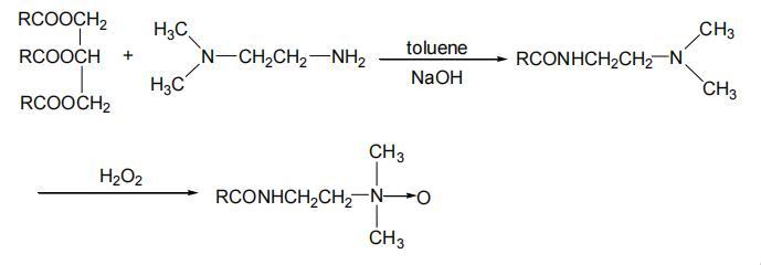 蓖麻油酰胺氧化胺的通式及合成方法 棉籽油酰胺氧化胺見(jiàn)Scheme 1。